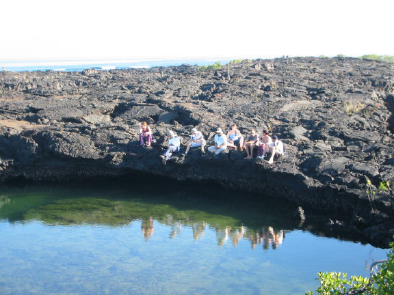 Our morning excursion was to Punta Moreno. We found a fairly large tidal pool with mangrove trees on one side. Mangroves are interesting because God designed them to handle the stresses of living so close to the water. Salt spray inhibits the growth of most plants because it dries out the tissues. (Ever use a saline nasal spray?) God enabled the mangroves to handle the salty conditions, and to actually grow in salt water, because their leaves have special glands that excrete the salt. |