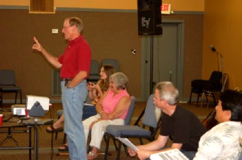 The Minnesatians Plus 2 sang a Sesame Street song. Nate Peterson accompanied while we listened to Tom Schultz, Nicole Willis, Ashli Warford and Jonathan Lindstrom sing "I Don't Want to Live on the Moon." |