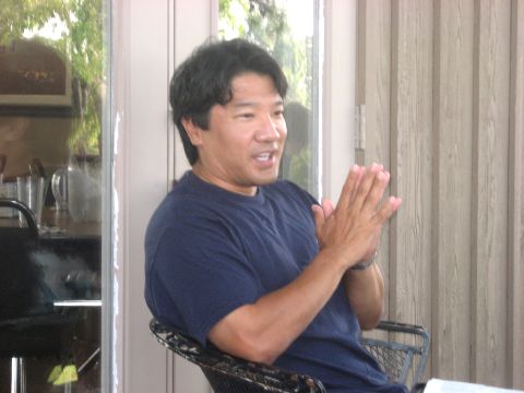 Pat Zukeran gets ready to tackle the high ropes course. Show-off! |