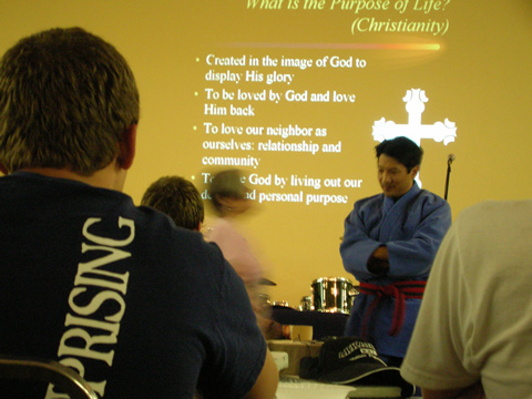 They were also visited by "Apolo-Jedi," played by Pat Zukeran. Apolo-Jedi is a pantheist who told the students the material world is all an illusion. |